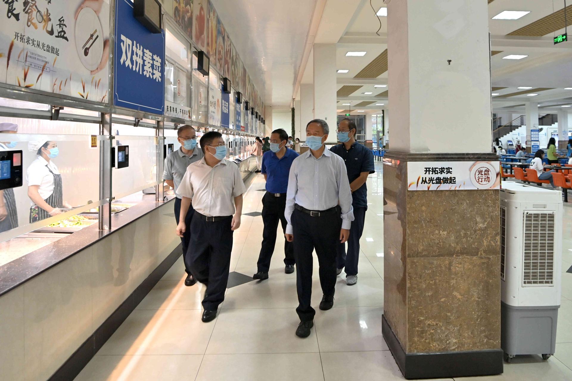 在學生食堂,趙德武、卓志一行仔細查看菜品供應情況,現場聽取相關負責人工作匯報。他溫情叮囑,特殊時期,一定要保障菜品質量、合理膳食搭配、保證師生營養,讓在校師生員工吃得放心吃得舒心,讓大家更加安心學習、安心工作。