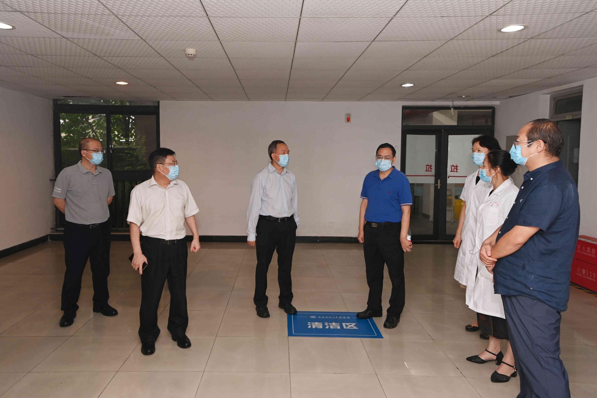 “大家辛苦了!下雨降溫注意保暖?!痹诤怂岵蓸狱c,趙德武、卓志向醫護人員和學生志愿者表達親切關切,并勉勵青年黨員和學生骨干,增強防控意識能力、積極響應學校號召,關鍵時刻沖上前,在崗位上做好工作、練就本領,爭做可堪重任的時代先鋒。