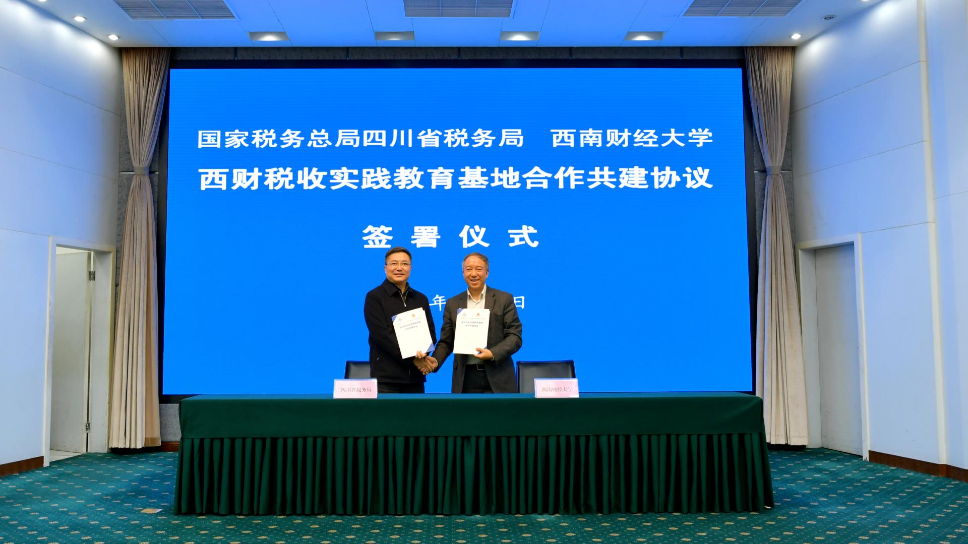12月9日,我校與國家稅務總局四川省稅務局在成都舉行西財稅收實踐教育基地合作共建協議簽署儀式,共同探索校局合作、精誠共治新模式。國家稅務總局四川省稅務局黨委書記、局長李杰,我校黨委副書記、校長卓志代表雙方簽署合作共建協議。
