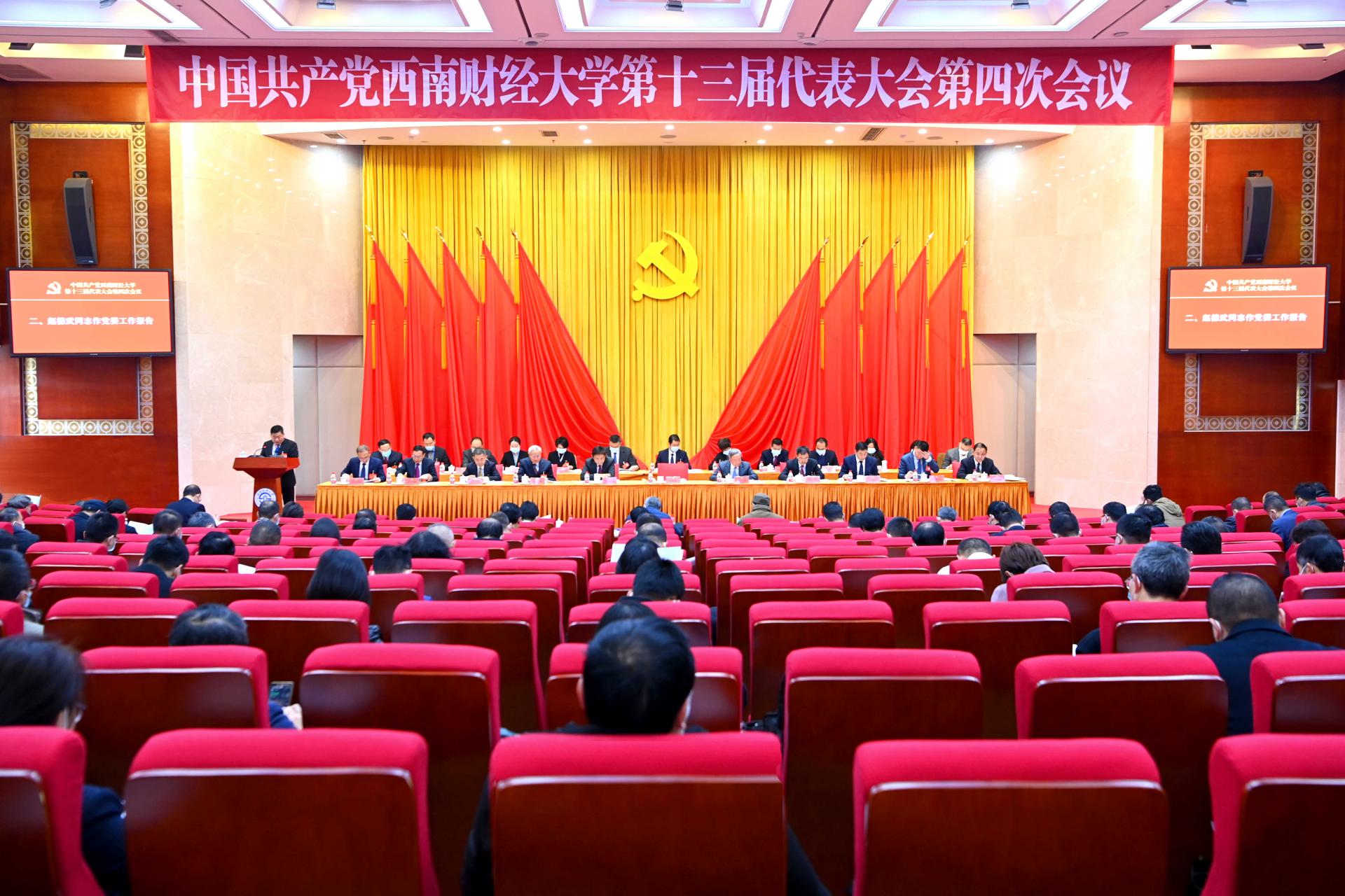 大會通過了趙德武同志代表學(xué)校黨委所作的工作報告,審議通過了《中國共產(chǎn)黨西南財經(jīng)大學(xué)第十三屆代表大會第四次會議決議》。
