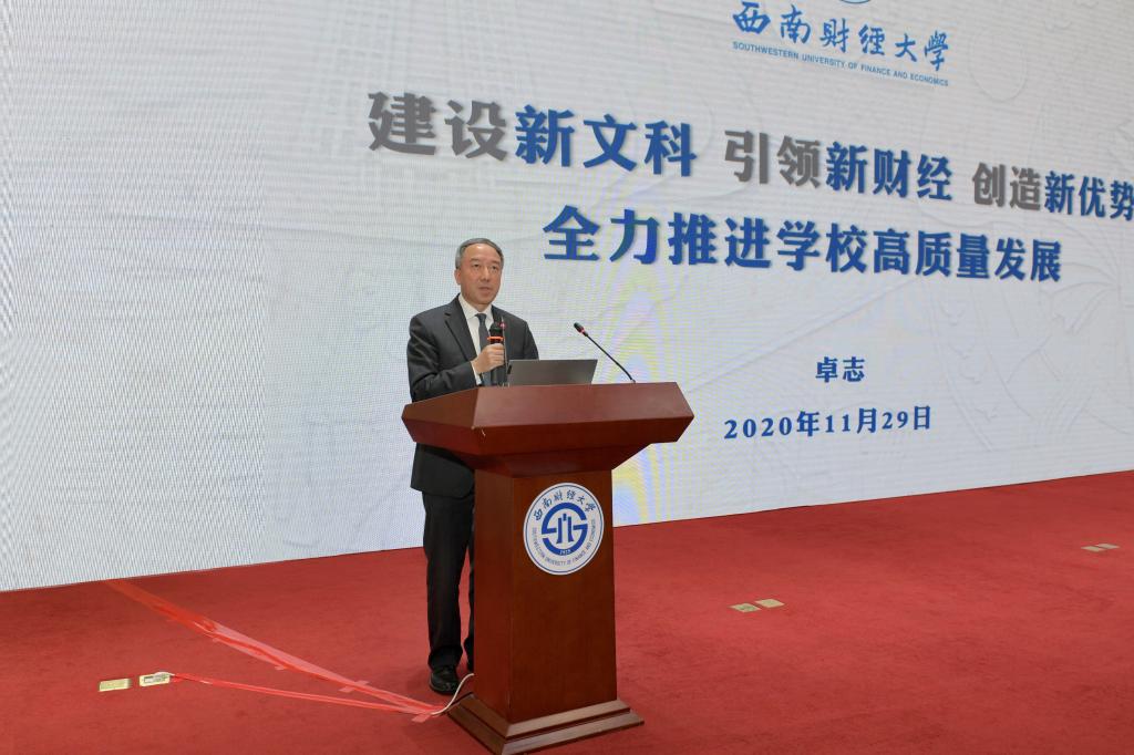 卓志作為校友總會新當選會長講話,對四川省教育廳、民政廳的關心指導,對廣大校友的支持信任表示衷心感謝。他指出,校友是學校流動的名片,校友工作是推動學校發展的重要組成部分;此次當選會長,自己深感分量重、責任大,將在學校黨委領導下,不斷思考創新校友工作理念、途徑和形式,更好服務校友發展,匯聚推動學校高質量發展的磅礴正能量。卓志對廣大校友提出三點希望,一是升華愛校之情、強校之志,聯系更密切、融合更緊密;二是匯聚發展偉力、奮進合力,以主人翁姿態與母校相互助益,共同發展;三是弘揚西財精神、家國情懷,在服務黨和國家事業發展過程中貢獻西財力量、發出西財時代之聲。卓志隨后在校友論壇上作題為《建設新文科 引領新財經 創造新優勢 全力推動學校高質量發展》主旨演講。他總結了近年來學校的辦學成就,指出建設“新文科”既是“當務之急”亦是“時代之需”,要把握高等教育發展新趨勢,立足“新財經”,以“四通”為引領,主動適應“新文科”新要求,引領“新財經”發展實踐,深化“十四五”規劃戰略研判,把握“十四五”發展戰略重點,科學系統制定“十四五”發展規劃,推動學校全面發展。