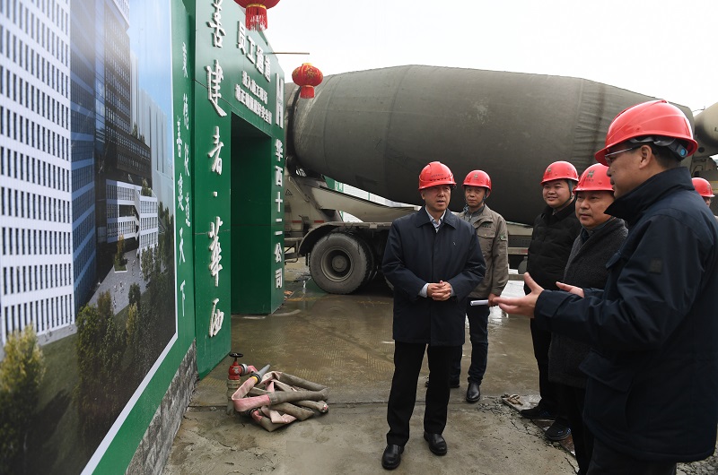 在柳林校區協同創新中心項目建設現場,一輛輛混凝土罐車行駛在工地上,兩座塔吊繁忙地運送著建筑材料,施工熱度絲毫不減。卓志走進施工現場實地查看項目建設情況,看望慰問堅守崗位的建設者。在項目部,卓志召開現場會,詳細聽取基建處負責人以及施工單位、監理單位、跟蹤審計單位、過程控制單位等的工作匯報,對全體建設者為項目的傾情付出表示感謝。他指出,柳林校區協同創新中心項目是學校“雙一流”建設的重要支撐。要嚴格落實安全生產要求,加強各單位協同配合,確保工程建設高標準、項目推進高質量,以工匠精神鑄就精品工程。