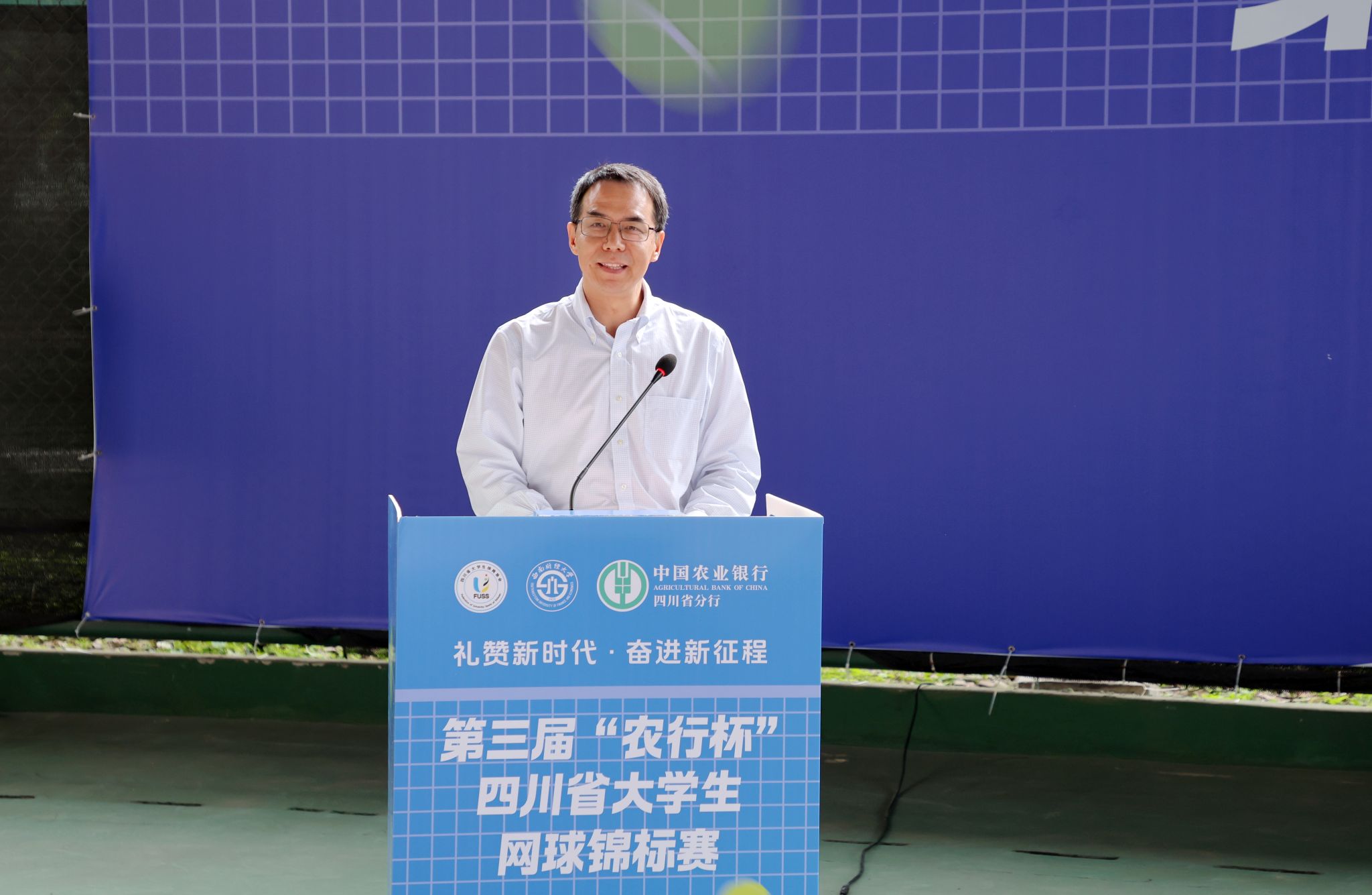 四川省教育廳副廳長石靜,四川省大學生體育協會總顧問、四川省大學生網球協會主席劉青,四川省高等院校網球協會主席賴廷謙,四川省網球協會副主席、新華社四川分社原社長劉欣欣,中國農業銀行股份有限公司四川省分行黨委委員、副行長兼成都分行黨委書記、行長王屹,中國農業銀行股份有限公司四川省分行高級專家兼成都分行黨委委員、副行長朱波,成都市網球協會副主席賀杰,四川省大學生體育協會會長、學校體育學院院長楊遠波,四川省大學生體育協會秘書長、西南交通大學體育學院院長劉江出席開幕式,并為比賽開球。