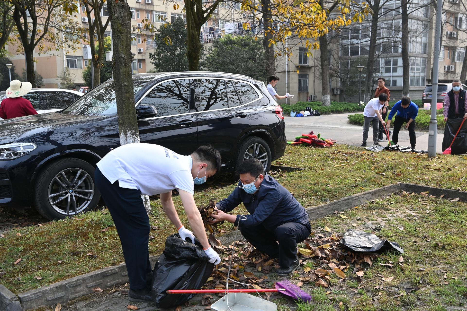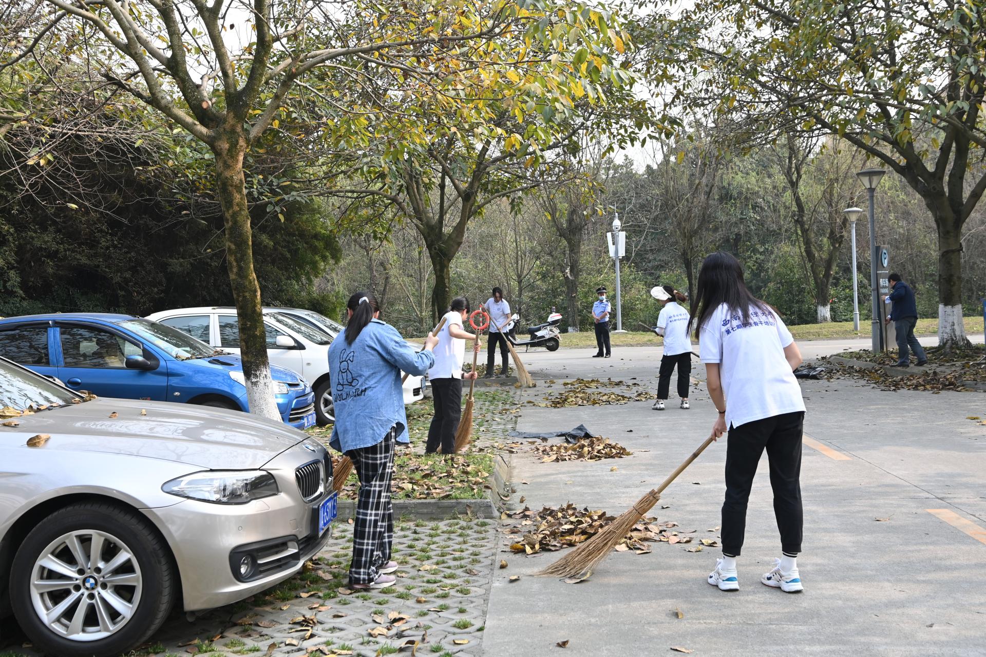喬木澆水施肥活動結束后,學校還在兩校區舉行了愛國衛生運動大掃除活動。在騰驤樓和光華樓周邊區域,師生們認真清掃地面、耙除落葉、搬運垃圾,徹底清理每一個衛生死角,讓初春的校園煥然一新。