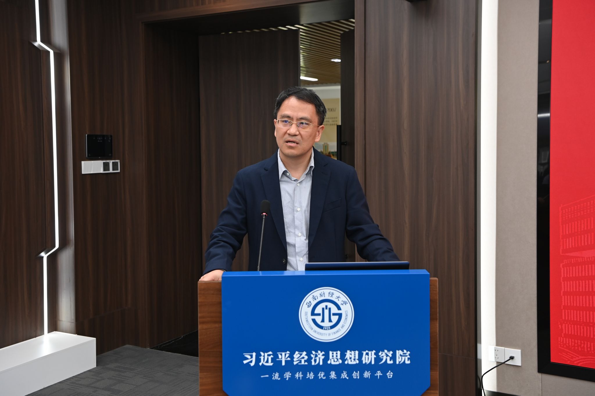 10月9日,學校習近平經濟思想研究院(一流學科培優集成創新平臺)成果發布會在柳林校區成功舉行。學校黨委副書記、習近平經濟思想研究院黨委書記謝紅,黨委常委、副校長、習近平經濟思想研究院常務副院長王擎出席發布會。來自中國社會科學院、中國農業科學院、南開大學、中南財經政法大學、四川大學、華南農業大學的專家學者,中國教育報、中國網、四川日報、教育導報等媒體,以及習近平經濟思想研究院各研究團隊成員代表參加發布會。