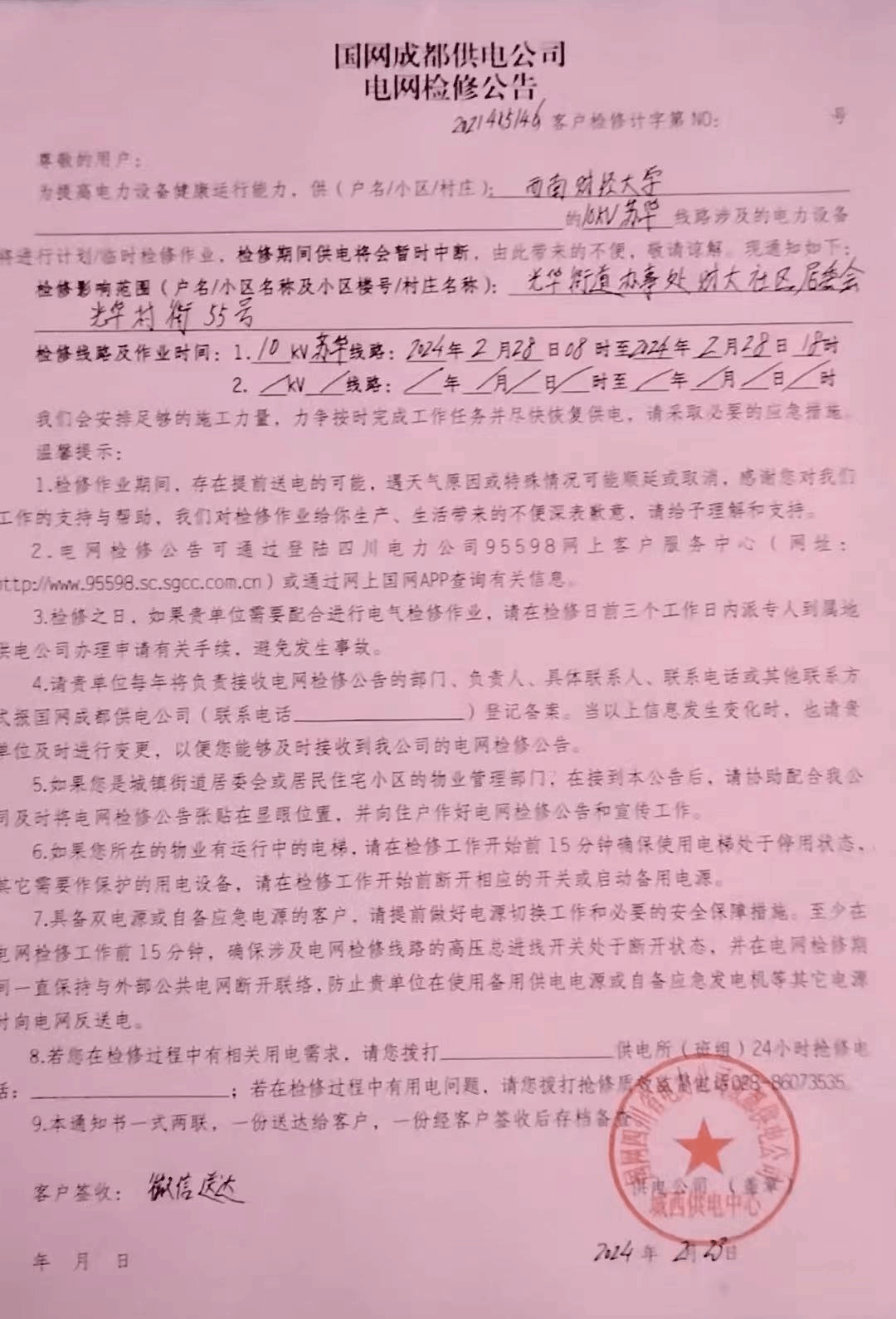1.停電時(shí)間:2024年2月28日(周三)8:00至18:00。